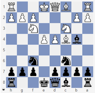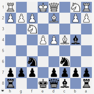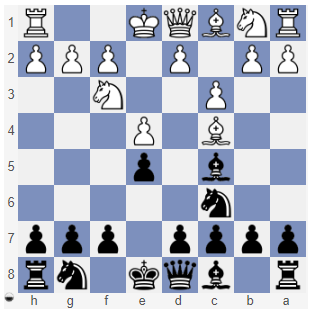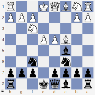 Zadania - odpowiedzi: 1. c2-c3 2. .. S g8-f6 3. .. G c5-b4 + 4. S b1-c3 5. S f6:e4 6. G b4:d2