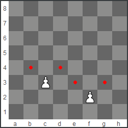 Wskaż na rysunku obok które bierki atakuje: czarny goniec.