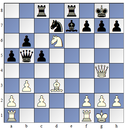 Wskaż na rysunku obok które bierki atakuje: czarny hetman.