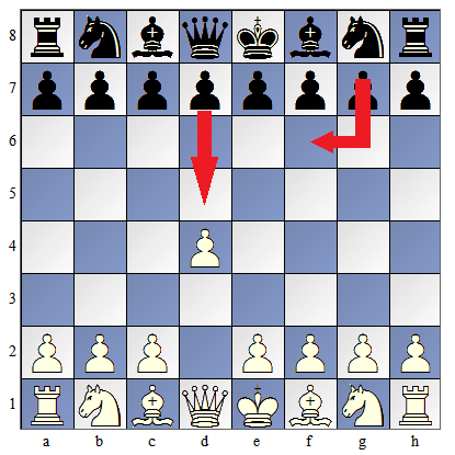 Najpopularniejszym zagraniem jest 1.d4 , po którym następuje odpowiedź: 1. ..d5 2. c4 (gambit hetmański) oraz 2. Sf6 Sf3 i inne ruchy niż 3. c4 (pionkiem hetmańskim). |