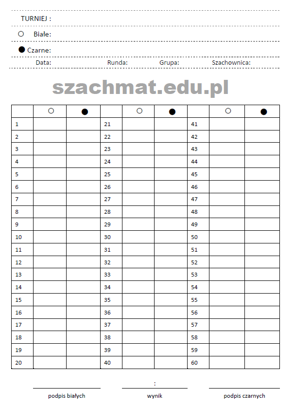 Pobierz blankiet do zapisu szachowego. Do pobrania TUTAJ (w formacie .pdf).