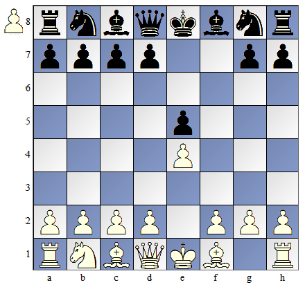 W debiutach otwartych partia zaczyna się po posunięciach 1.e4 e5. Obie strony otworzyły grę dla hetmana i gońca i jednocześnie wzięły pod kontrolę ważne punkty w centrum (białe kontrolują pola d5 i f5, natomiast czarne pola d4 i f4). Gra długo toczy się o piona e5, którego białe mogą już zaatakować w drugim posunięciu ( 2.Sf3, 2.d4 i 2.f4) [patrz diagram]. Czarne również mogą przystąpić od razu do kontrataku napadając na pionka e4 (2. .. Sf6, 2. .. d5 i 2. .. f5). Ale najbardziej solidnym planem jest obrona punktu e5 za pomocą 2. .. Sc6, gdyż skoczek oprócz obrony piona bierze pod kontrolę inne pola w centrum. Białe mogą konsekwentnie kontynuować nacisk na e5, np. po ruchu 3. d4 (partia szkocka). Często rozwija się gońca na b5, aby wciąż stwarzać groźby centralnemu pionkowi czarnych, tym razem poprzez próbę eliminacji obrońcy (partia hiszpańska). Znanym Ci już ruchem jest 3. Gc4, w którym białe stwarzają naciski na centrum i dalej bezpośrednio na pozycję króla przeciwnika (partia włoska). |