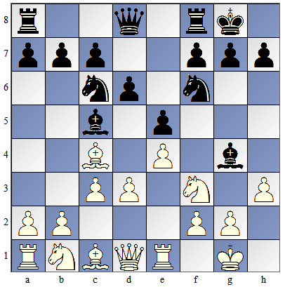 Białe pionki odgrywają ważną rolę: - na e4 i d3 walczą o centrum, - na c3 i d3 zabezpieczają pozycję białych przed wtargnięciem czarnych figur - na f2 i g2 zabezpieczają króla przed bezpośrednimi atakami czarnych. Ich ustawienie powoduje, że podstawowy plan gry białych to atak na skrzydle królewskim. |