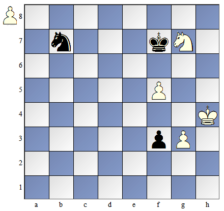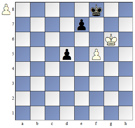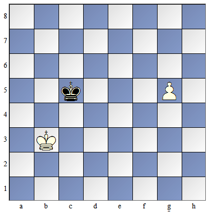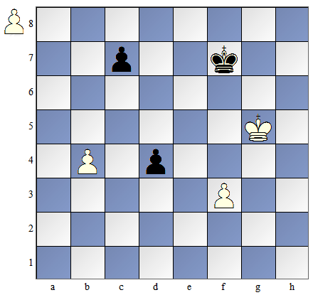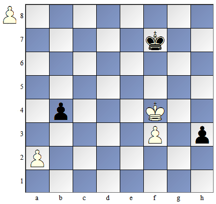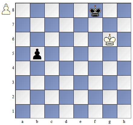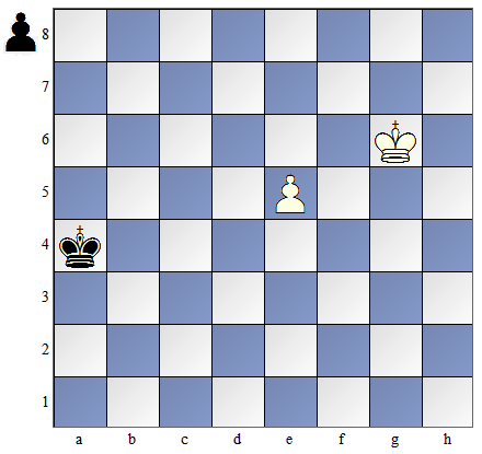W pozycji pokazanej na diagramie obok białe mają posunięcie. By dogonić piona muszą one zagrać: