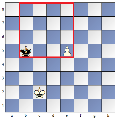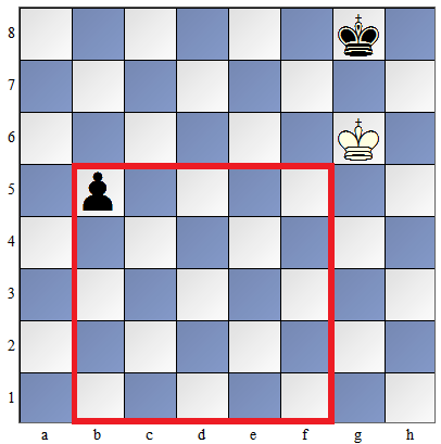 Ważna zasada: Jeśli król strony przeciwnej znajduje się w kwadracie piona, wówczas zdoła przeszkodzić w przemianie piona w hetmana (zdoła zabić piona lub hetmana przemienionego z piona). Zapamiętaj tę zasadę, jej znajomość ułatwi ci ocenę szans na wygraną lub remis w rozgrywanej partii, bez konieczności dokładnego i czasochłonnego liczenia. |