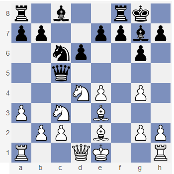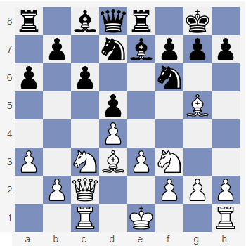 Spójrz na diagram obok. Nie ma czarnego piona na linii c i już wiesz z poprzedniego przykładu, że jest to dla czarnych świetna kolumna do ataku wieżą. Ale spójrz na pionka na g3. Jego znaczenie polega na tym, że nie zajmuje pola g2, na którym może stanąć czarnopolowy goniec i w ten sposób kontrolować najdłuższą przekątną. Dzięki tak ustawionym pionom plan czarnych jest prosty: po opanowaniu centrum konstruować atak na skrzydle hetmańskim. Wynika to wprost ze specyficznego ustawienia pionków, które nazywa się formacją smoka (formacją smoczą). Na taką koncepcję gry Białe mogą przedstawić w zasadzie jeden pomysł: próbę rozbicia struktury pionowej czarnych na skrzydle królewskim. |